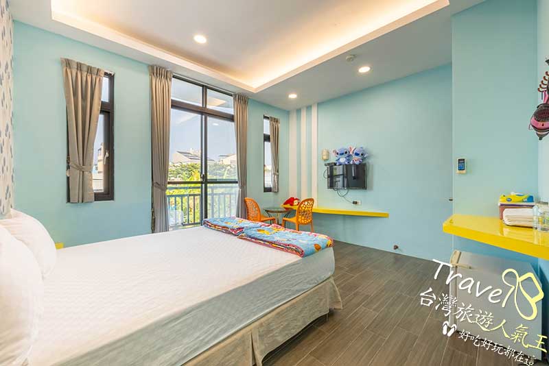 這間二人房的氣氛很輕鬆,走進來會先注意到大片的採光,陽光從落地窗灑進來,把房間照得明亮又舒服。