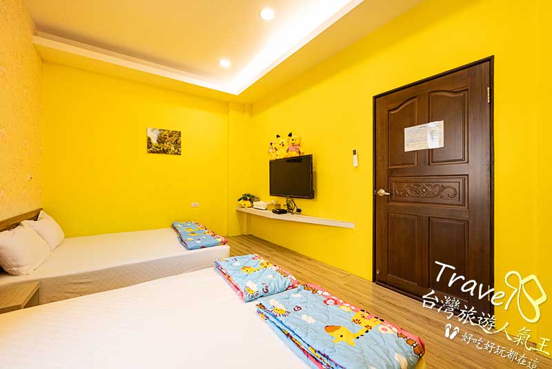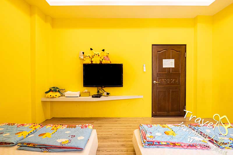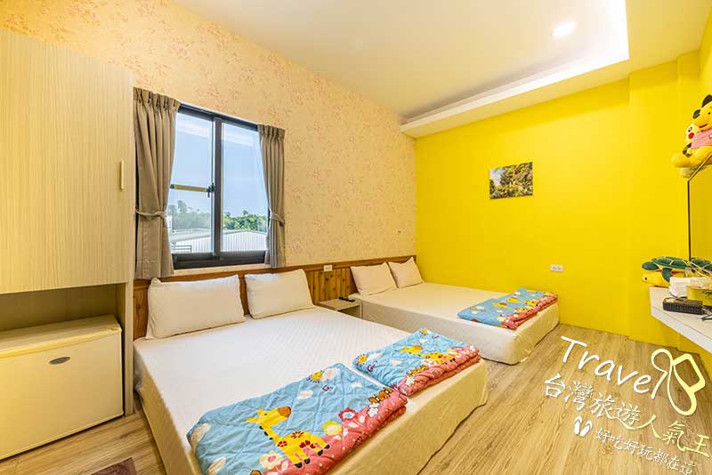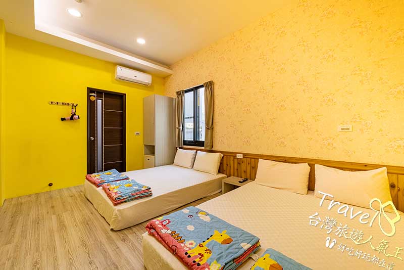曼琉球民宿的四人房以 明亮自然光線、溫馨木質設計 為主調,